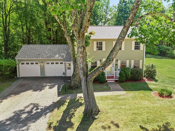Discover this charming four-bedroom, 1.75 -bath colonial nestled in a serene setting in Atkinson. As you enter, you’ll be greeted by a spacious living room featuring a cozy fireplace and elegant hardwood floors that extend throughout the home. The formal dining room is perfect for hosting gatherings, while the well-equipped, eat in kitchen boasts stainless steel appliances and ample storage space for all your culinary needs. One of the standout features of this home is the sunroom, a delightful space surrounded by windows that offers picturesque views of the yard and serves as the ideal spot for relaxation. Upstairs, you'll find all four bedrooms, including a primary suite with generous closet space. The second floor also includes a full bathroom for added convenience. The property is situated on a beautifully maintained 0.69-acre lot, offering both privacy and ample outdoor space. It includes an attached two-car garage and an additional garage/shed at the back of the property, providing plenty of room for storage or hobbies. Recent updates include a remodeled 2nd floor bath (2020), new oil tank, hot water heater and furnace (2023/2024)! This colonial home combines classic charm with modern amenities, making it a perfect place to call home - come and see this!