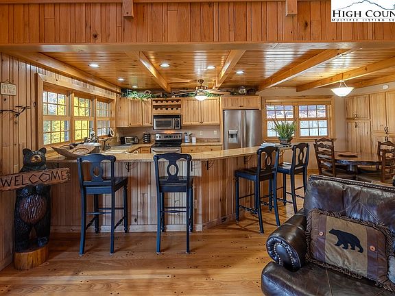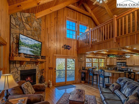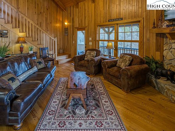 Custom Built Home on 1.14 acres overlooking the Community Lake. Southern exposure with gorgeous mountain views. Private waterfall and pond on this unique property with fire pit. Mostly furnished with fine mountain furnishings (a few exclusions). Gourmet Kitchen with granite countertops, Stainless Steel Appliances. Large Wrap Around Deck with lots of space for entertaining with covered dining area and hot tub. Main level has tall ceilings, kitchen, dining, primary bedroom and half bath. Primary bath has large double sink vanity with granite and walk in shower. Opens to the large deck. Upstairs you will find 2 more bedrooms and a full bath with 2 sinks. There is also a usable loft for relaxing, reading and more sleeping area. Downstairs is large family room with pool table and big seating area for gathering and watching TV. along with another bedroom, full bath with granite and shower and laundry area. Another full deck here which leads to the yard. Walk to a beautiful natural waterfall/park area. Just 15 minutes from downtown Banner Elk and 2 minutes from the gate. Amenities within the gates are: 24 hour Clubhouse featuring a 14-Seat Theater, Game Room, Gourmet Kitchen, Fitness Center, Dining Area, Great Room with Fireplace. Additional Amenities include Two Lakes for Fishing and Canoeing and Kayaking, Har-Tru Tennis Court, and Several Parks including a Dog Park and the Deer Creek Park with it's Twin Treehouses, Tee Pee and Swinging Bridge. Just a 15 minute drive will get you to Downtown Banner Elk & close proximity to Wildcat Lake, Restaurants, Skiing, Tubing, Fishing, Hiking, White Water Rafting, Golf, Shopping, Concerts in Park, etc.