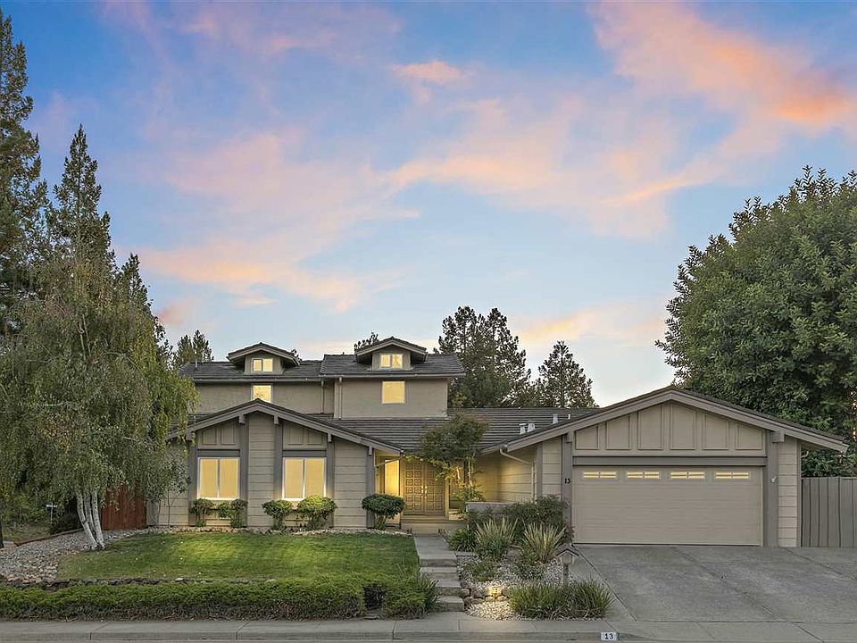 Welcome home to 13 Suva Court! This recently updated Country View home is sure to check all of the boxes with an ideal floorplan and private setting. Upon entry you will be welcomed to the great room/living room featuring soaring ceilings and abundant natural light. Also on the first floor you will find a Family Room with Fireplace, Formal Dining Room, an Updated Kitchen with breakfast which opens to the large paved rear patio and yard, 3 bedrooms and two baths including a first-floor master suite and in home laundry. Upstairs you will find a second Master Bedroom Retreat to call your own. All of this conveniently located on a quiet court with a large private lot featuring a lush grassy rear yard, oversized patio, large redwood trees; and hill views. You will be happy to spend time outside in your very own parklike setting listening the birds sing. Conveniently located minutes from shopping, dining, and so much more.