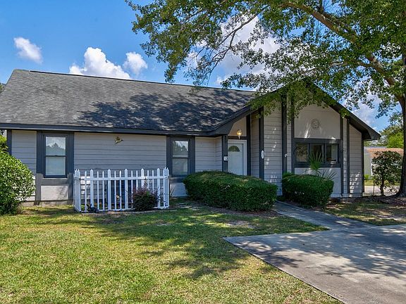 Discover this delightful sanctuary in Bradford Village—a charming two-bedroom, two-bath home, tucked away on a peaceful cul-de-sac in the heart of Santee, South Carolina.  Located within a welcoming a 55+ gated retirement community, this move-in ready home is perfect for those looking to embrace a vibrant lifestyle with all the comforts of home.    This lovely home radiates southern charm. Step into a cozy courtyard garden that invites you to unwind and enjoy the sweet Carolina breeze. The cedar siding adds a warm, rustic touch, making this home as unique as it is inviting.  What sets this gem apart is the private workshop and shed out back, perfect for tinkering, crafting, or simply enjoying a quiet hobby. With no yard maintenance required, you'll have plenty of time to indulge in the com