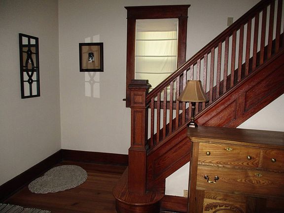 Unspoiled Beauty And A Perfect Location! If you are a lover of natural woodwork and hardwood floors you will love this house! As well as lovely hardwood floors and natural woodwork the first floor features spacious light filled living room, dining room with pellet stove for added heat, 1/2 bath and a quaint kitchen with white granny cupboards. Second floor has 4 bedrooms, full bath and walk up attic access for added storage. Home has a large front porch and an enclosed back porch, nice backyard, blacktop driveway and a 2 car garage. Updates include replacement windows and 2 year old roof on the house. Great location within walking distance to Downtown, Both Parks and Fox Hospital. Call today to see this lovely home!