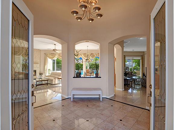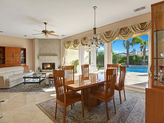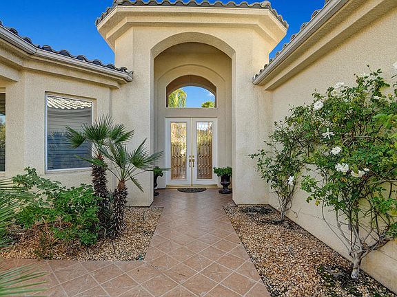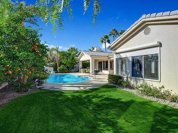 This stunning south facing pool home is located in the beautiful community of Victoria Falls in Rancho Mirage. This home can come partially furnished and is equipped with OWNED SOLAR. From the soaring grand entrance with double door entry to the elegant foyer, this home does not cease to impress. There are 4 bedrooms and a 3 car garage. This spacious floor plan offers a sizeable kitchen with granite counters, stainless steel appliances, an island with a prep sink and a walk-in pantry large enough to fit a second fridge. Enjoy two separate fireplaces- one in the family room and the other in the formal living room area. The primary bedroom suite features exterior shades and a dreamy walk-in closet. Enjoy the backyard oasis with a salt water pool and spa and a private gas BBQ. This community has low monthly HOA dues and includes basic cable, tennis and pickle ball courts. So much to do and see all while in the heart of Rancho Mirage. Don't miss this home. SELLER OFFERING 15,000 CONCESSION TO BUYER.