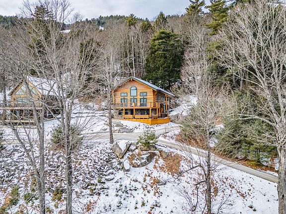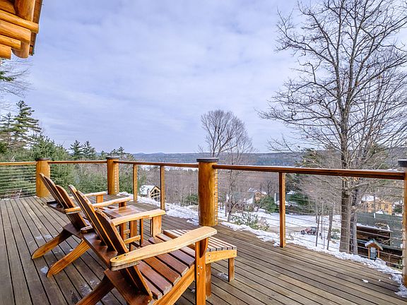 Rare opportunity to own a ski-in, ski-out property at Pleasant Mountain Ski Area; now Boyne Resorts! This stunning, custom-built log home is nestled slope-side in an exclusive community, offering its' own chairlift and direct access to the ski trails right from your doorstep. Enjoy breathtaking views of the mountains and water views of Moose Pond from your expansive deck or from nearly every room in the house. Inside this elegant home, you will be greeted by rustic charm beaming with plenty of natural light from an abundance of windows and three sets of beautiful French doors that offer full-length windows. Modern lighting illuminates this lovely 3-bedroom mountain oasis, complete with a primary bedroom featuring a master bathroom showcasing a custom tile shower and large soaking tub to unwind after a perfect day on the slopes. Cathedral ceilings and three-levels of living space boast plenty of area for family or guests, highlighted by two living rooms; each featuring a cozy gas fireplace. The cabin shines with many recent upgrades including fresh chinking and staining, a new roof and refinished bathrooms. Modern enhancements include an on-demand whole-home generator, three efficient mini-splits delivering heat or AC in each bedroom, EV charging station, a high-performance induction cooktop, Ring security cameras and Nest thermostats. The cabin has strong rental history and is being offered fully furnished, making it an amazing opportunity for a turn-key investment for short-term rentals or an ideal retreat for personal use. Situated in the heart of the Lakes Region, immerse yourself in Bridgton's charming community events, dining, shops, entertainment and beaches; all just minutes away. Discover the seamless blend of serenity and accessibility located 2.5 hours from Boston, 1 hour from the Portland Jetport, and 30 minutes to North Conway, NH. Experience unmatched views, recreation and beauty at your own mountain escape on Pleasant Mountain!