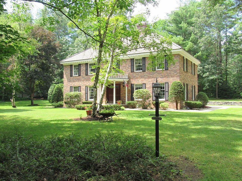 Classic brick colonial in a private setting on over an acre in desirable Bedford Close. Beautifully landscaped and treed, with gorgeous perennials, red Maples and stacked stone walls. LR has attractive stone fireplace, hardwoods and built-ins. Spacious formal DR for large gatherings. Kitchen is a chef's dream- elegant cabinets, Corian counters, Sub-Zero fridge, KitchenAid downdraft stove and double door pantry with pull drawers. Casual dining with bay window overlooks the lush lawn and gardens. Family Room with woodstove has sliders to the patio for outdoor dining and fun. This home has a 1st floor BR or Office, 1st floor Bath and 1st floor laundry room. Wraparound Master suite with his and her walk-in closets. Huge Workshop and Gym in the basement, oversized 2 car garage. This is the one.