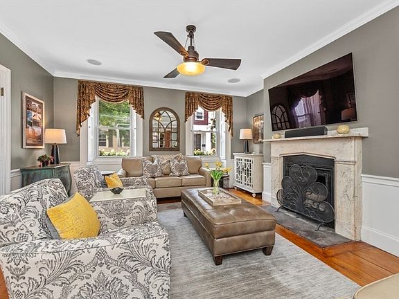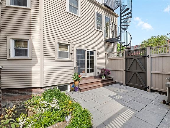 Steeped in history, you'll find this captivating 3BR, 2.5 BA home nestled in a distinguished Federal-style brick Bldg. radiating charm & character. Offering 1875 sq ft of living space across two floors, this residence features a private, fenced-in courtyard w/patio & parking outside your door. The spacious LVRM showcases a wd-burning FP w/marble surround, elegant built-ins, and oversized windows w/pocket shutters flooding the space w/natural light. Crown moldings & original wide plank flrs extend into the formal DR, exuding timeless elegance. The EIK is a chef’s dream, w/direct access to the courtyard ideal for al fresco dining. Completing the first floor is a versatile third bedroom, perfect as a home office & a half bath. Downstairs, retreat to the serene master suite featuring a dressing room & en suite bath w/double vanity & a walk-in shower. An additional bedroom, full BA, laundry rm & a bonus rm w/ French drs complete this exquisite home, offering ultimate comfort & convenience.