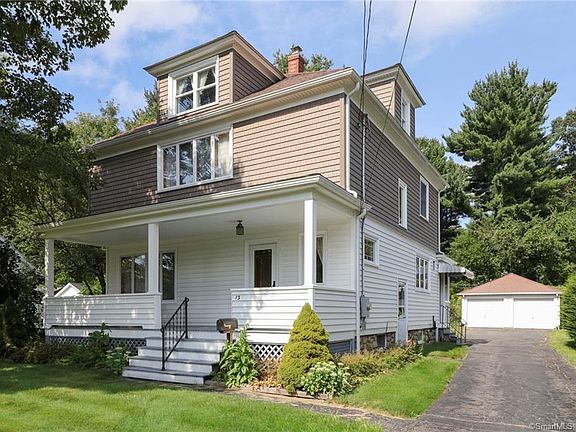 This charming three bedroom home is full of character and natural light The main floor offers an eat-in kitchen with gas range; dining room with bay window and sliders to deck; living room with large windows and french doors to foyer. A half bath and enclosed mudroom in back complete the first floor. The second floor includes three generous size bedrooms and a full bath. Walk-up attic complete with flooring and full size windows allow for plenty of storage or the possibility of finishing for additional living space. Hardwood floors in all bedrooms, living and dining rooms. Large level lot with two car detached garage. Central Air. Located in walking distance to parks, schools and town center.