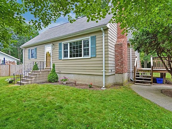 Charming Cape Style Home located in a desirable neighborhood. The first floor of this home offers a Living Room with fireplace; a Kitchen with tile flooring, stainless appliances, pantry closet and a spacious Dining Area with hardwood flooring; two Bedrooms and a full Bathroom. The 2nd floor offers offers two additional Bedrooms, a spacious front to back Bedroom with a ceiling fan and a large Master Bedroom Suite. The Master has two closets and built in cabinets, a ceiling fan and a spacious Master Bath with a large custom shower, tile flooring and nice vanity. There is a Family Room in the lower level with berber carpeting and a 2nd fireplace as well as the unfinished half of the basement for laundry & storage. Central Air Conditioning is ready for hot summer days. The partially fenced backyard is level and boasts a storage shed and a wood shed. A great location offering easy access to town, schools & commuter routes.