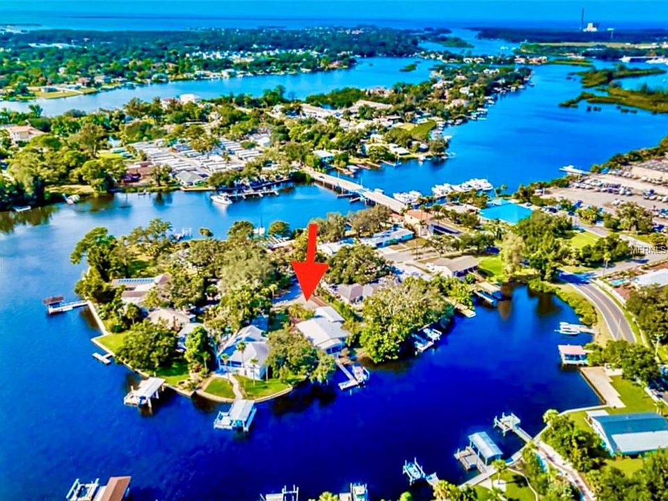 Price Reduced~Gulf access under 500k! Dock & 10,000 lb Boat Lift minutes to the Gulf. It's the perfect waterfront lifestyle for a price that won't take your breath away~ Move right into this beautifully updated (easily convert to 3 BR) 2BR/OFFICE/2BA/2CAR Garage. The home incorporates many of Frank Lloyd Wright's visionary architectural features; open floor plan, high ceilings, wood ceilings and beams, extensive glass, natural light & large overhanging eaves. Your modern granite kitchen is the center for all gatherings with wide water views that will inspire the chef, Stainless Steel appliances, wood cabinets, glass tile backsplash, ample storage & counter space. View amazing crimson skies from your waterfront dining area or step thru glass doors & dine alfresco on your private covered porch. Spacious great room, bonus office room, large M-suite with wide water view & private sitting area. Updated master bath with granite, walk-in shower, contemporary fixtures & loads of storage. Your outdoor waterfront oasis features 11x20 covered patio, perfect for entertaining. Fish from your dock or sail away in your boat to nearby islands: Anclote, Caladesi & 3 Rooker. Bike or walk to Fred Howard Beach & the famous Tarpon Springs Sponge Docks w/fabulous restaurants & unique shops. Commerce centers of St Pete & Tampa Intl' Airport are nearby. Come Home to Paradise - It's the complete waterfront lifestyle!