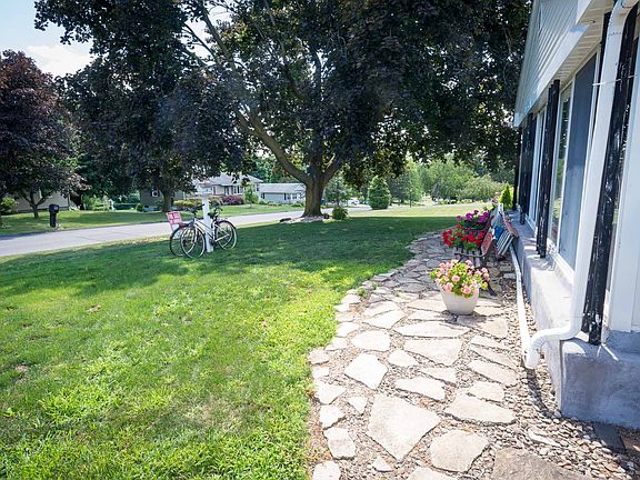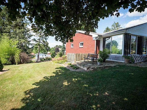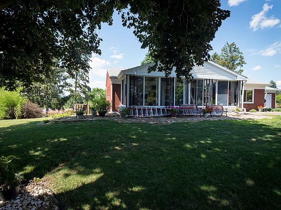 Home with a garden. Cherish the cozy warmth of the woodwork throughout this spacious home. From the updated knotty pine kitchen with deep, double cast iron sink, tile floors, enjoy the natural flow from kitchen to dining area to living room with an inviting brick fireplace. This home lends itself to entertaining and plain comfortable living. Hardwood floors and easy care tile shimmer in the wonderful light from windows all around. Mornings with coffee and croissants in the heated and air conditioned sunroom as you watch the birds at the feeder, then move to the dining area and watch the birds visit the bird bath. Wonderful layout which somehow is both open and inviting yet provides privacy and intimacy. The lower level - sure it is a ranch, but the walkout lower level is detailed for comfort and deserves better than to be call a basement - this lower level has been updated with thick insulation placed behind the honest wood paneling. Both levels have central air, natural gas hot water baseboard heat, wood burning fireplaces up and down, and both fitted with natural gas. All windows are new, all the exterior is brick with cinder block, the exterior trim is aluminum so there is no painting this house. Decks - well - these need to be called something better as these raised concrete balconies don't need to be sanded and painted every year. The hand rail? Stainless Steel! And under the concrete balconies? Huge storage beneath the balconies protected with concrete floor, block walls, and maintenance free sliding "barn" doors. Did we mention the slide out pantries upstairs to provide easy access and loads of shelving for linen and dry foods/kitchen appliances? How about a 25x25 covered concrete patio, stone terracing, underground utilities? Oh - even the two car detached garage has storage above, and that the shared roof provides shelter to a breezeway between the house and garage - stay out of the snow and rain!We'll arrange showings for qualified buyers. Here's a link to a Virtual Tour: http://nancysnuwave.com/vtour/realestate/Vertie/vtour/tour.html