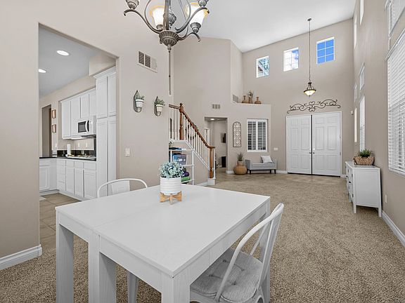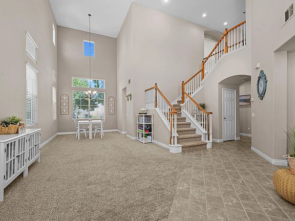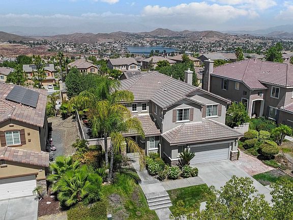Stunning former model home tucked away in the Tuscany Hills community! Large formal entryway with soaring vaulted ceilings leads you into the living room and formal dining space. The kitchen features updated cabinets, appliances, solid surface counter tops and opens up to a very private and beautifully landscaped backyard with stunning mountain views. Off the kitchen is a cozy living room with built ins and fireplace. Walk up the grand staircase and you will find a loft perfect for movie nights that leads into a beautiful primary suite with vaulted ceilings. Private balcony overlooks Canyon Lake and is perfect for your morning coffee. Additionally there are three more bedrooms, a full bath, and a large laundry room with storage on the second floor. Fresh paint and carpet and newer water heater. HOA features clubhouse, pool, tennis courts, and a work out facility. An absolute must see property!