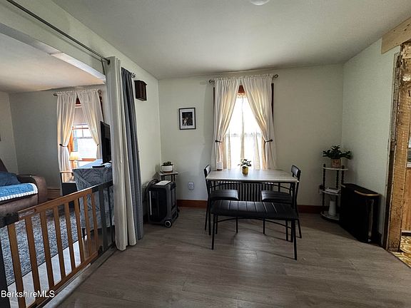 Just starting out or downsizing. This 2 bedroom 6 room ranch is just what you need. Located at the foot of Mt.Greylock and the Greylock Glen. Oversized, level, corner lot, with sheds, gardens, stunning mountain views and is completely fenced in for privacy. Parking not an issue with a driveway on each side of the house plus an attached garage. Step inside to a warm cozy home. The interior is freshly painted, new flooring throughout, newer roof & boiler. Abundance of storage with finished attic and full basement. Don't miss out on this well maintained 2 bedroom ranch.