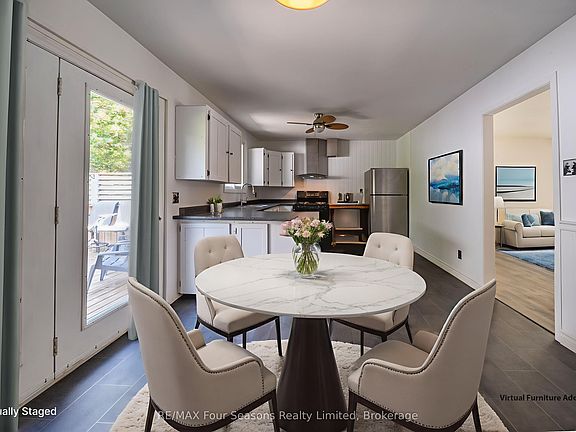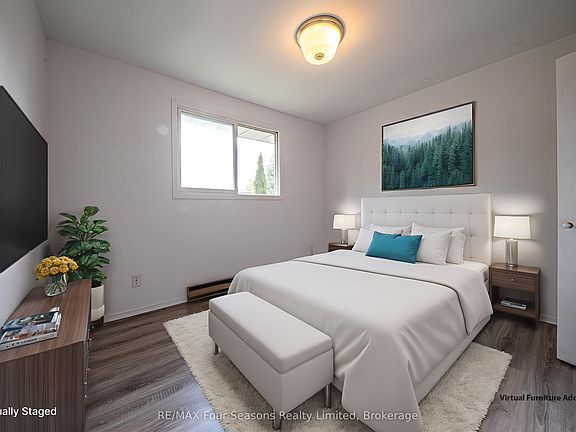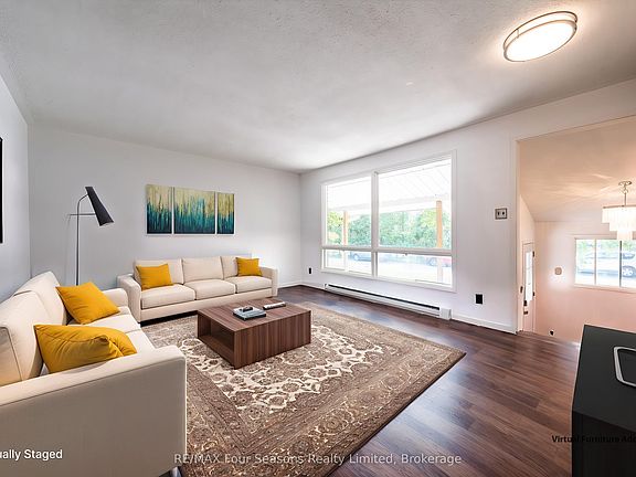 Location Location, homes on this street backing on to the trail system don't come up often. Bike, walk or snowshoe into "Historic" downtown Collingwood in just minutes. Great opportunity for retirees or first time buyers to own a solid 4 bedroom brick bungalow in a great location. 3 bedrooms on the main level, with bright living room, eat-in kitchen leading out to a large deck overlooking the quiet, private back yard. Lower level offers a further bedroom, large family room with walkout to the gardens, office, workshop and large laundry room. Please note the exterior back photos were taken last year. The pool needs a new liner so has not been filled.The upstairs of this home has been virtually staged.
