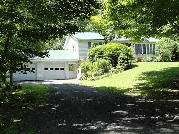 Sharp 2 bedroom 1.5 bath cozy ranch features gorgeous sparkling new hardwood floors, large living room, formal dining room, large master bedroom with half bath, kitchen with newer stainless steel appliances, 3 season enclosed porch, basement with woodstove and propane space heater, two car garage. Awesome lot on 3 acres with stream and views of the mountains! An absolute must see!