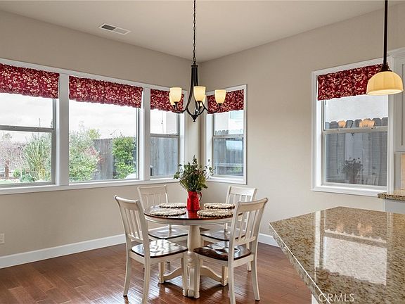 Welcome to this beautifully designed 3-bedroom, 2-bathroom home with an office, formal dining room, and breakfast nook—offering the perfect blend of comfort and functionality. Nestled in a quiet cul-de-sac in one of Chico’s most sought-after neighborhoods, this home is just minutes from shopping, dining, and essential services. Step inside to find gorgeous wood flooring throughout the main living areas, creating a warm and inviting atmosphere. The heart of the home is the spacious kitchen, featuring a large island, ample counter space, and a cozy breakfast nook for casual dining. The formal dining room provides an elegant space for gatherings and special occasions. The primary suite is a true retreat, complete with his and her closets, a soaking tub, a double vanity, and a separate shower—designed for ultimate relaxation. Indoor/outdoor surround sound, and a hands free kitchen faucet. A dedicated laundry room adds to the home’s convenience. Outside, enjoy a fully owned solar system, a chicken coop, and a shed/workshop with power perfect for hobbies, storage, or a personal workspace. Fenced-in irrigated, raised garden beds and an outdoor sink with running water. There is a gate that leads behind the property for easy access for loading or unloading. The cul-de-sac location offers peace and privacy while keeping you close to all that Chico has to offer. Don’t miss out on this fantastic opportunity—schedule a showing today!
