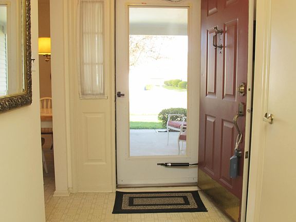 New listing! This is the ever-popular Madison model. The interior has neutral paint and flooring - no wallpaper here. Features include updated baths, ceiling fans throughout - including the garage, a skylight in the sunroom, and three sets of sliding doors that open to a deck that wraps around the sunroom with a gate on the right side of the house. The one car garage has a door opener, a nice workshop area with a bench and pull-down stairs to the attic, providing plenty of additional storage. The Holiday Village community offers a clubhouse with a pool, tennis courts and many activities. The HOA cuts and trims the grass during the growing season and clears snow if at least 2" falls in the winter. Holiday Village is an active 55+ community.