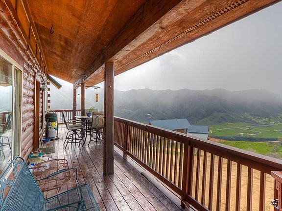 Log home with PANORAMIC views & private setting. 3 Bedrms & an Office that can be a 4th bedroom. Basement has large Artist Work Studio that can be converted to a Family Room or additional bedrooms. Hardwood floors main level, open great room. Loft bedroom has private bathroom perfect for guests. Close to Lucky Peak Reservoir for recreation. Large detached Shop/Garage for projects and toys.The New Home Owner will receive a $100 month lease & free high speed broadband from Wilderness Wireless. Ask for details