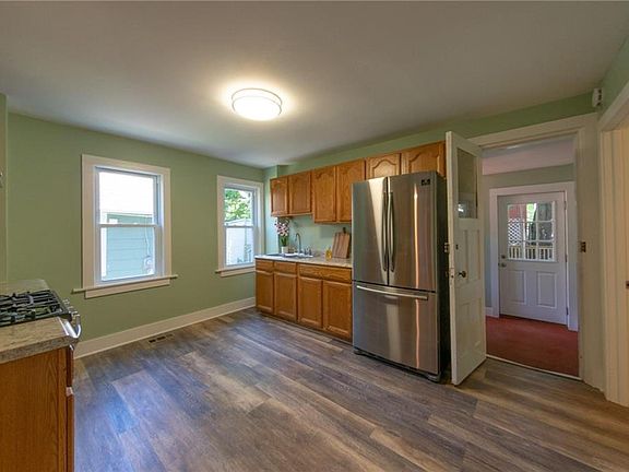 Newly renovated, 1st floor apartment that has a central air and new appliances. A nice yard with a deck for summertime entertainment. Off street parking. A full basement with washer and dryer hook-ups. Great location with walking distance to the bus stop, coffee shops, restaurants, etc. Ideal apartment for off campus students, graduate students, residents or families. Owner pays for water and lawn care. Fridge and stove supplied. Renter to pay for gas/electric, snow removal, and needs to supply washer/dryer. No smoking. Small dog/cat allowed with deposit and additional monthly fee. Interested applicants will need to fill out Zillow rental application after touring apartment.