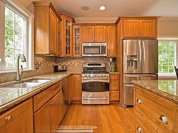 Quality abounds inside & out on this pretty Colonial sited on cul de sac in sought after neighborhood setting. Bright & airy open floor plan. Oak kitchen w/center island, granite counters, range, micro, dishwasher, refrigerator all stainless steel. Kitchen opens to a gorgeous family room w fireplace & slider to a large deck overlooking expansive backyard! Dining room & living room w/molding & hardwood floors thru-out first floor. Half bath w/1st floor laundry. Master bedroom with walk-in closet, Master bath double sink vanity, shower, jacuzzi & tiled floor. Good size secondary bedrooms. Fourth bedroom has a walk-up stair for attic that can be made into an office or just leave for storage! Bright finished basement with slider to backyard. 2 Car garage under. Town water & Sewer. Ideal location proximate to top-ranked schools, downtown, commuter rail & major routes.