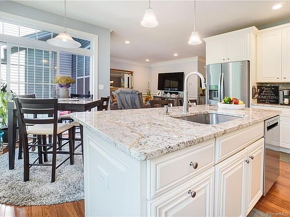Beautiful meticulously maintained Townhouse located in the Hills of Rivington. This 3 bed, 2 1/2 bath home is found on the only cul-de-sac in Rivington there is not a nicer location. It has a spacious, open floorplan, beautiful hardwood floors and crown molding throughout the main level. The gourmet open kitchen has S/S appliances high end cabinets and granite counters with glass tiled back-splash. The center island has room for dining and easy access to the private deck. The dining room is complete with crown molding, chair rail and tray ceiling. Upstairs you will find a large master bedroom with spa like amenities, tiled shower, whirlpool tub and walk in closet with custom closet system. The loft is big enough to use as a family room or office. The laundry room is conveniently located off the loft adjacent to the other 2 bedrooms, both with custom closet systems. The hall bath has the upgraded tiled tub/shower. Large 2 car garage has custom storage cabinets and shelving. Downstairs the full walk out basement can be finished, set up as a home gym and is even pre plumbed to add in another full bath. With Rivington's resort style amenities, there is something for everyone, from the indoor & outdoor pools, clubhouse, tennis court, state of the art fitness center and walking trails. Conveniently located close to shopping, restaurants and I-84 it's just a short commute to New York, only 60 miles to Midtown. Like the sign says, your happily ever after can start right here.