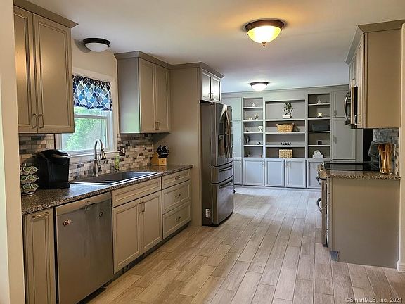 This Spacious 4 bdrm Ranch with an open floor plan is located on a private & large lot on a very quiet road in the conveniently located northern end of Simsbury off Hopmeadow St. Wonderful location, close to Simsbury Center & shopping! This home also boasts a Beautiful, Brand New expansive Eat-in-Kitchen with dining area & breakfast nook space, New Cabinets, Custom built-ins, Granite counters, New Tile flooring & Backsplash, newer Stainless Steel Appliances, brand new Windows and a Rolling marble topped island! Plus an updated full bathroom in the Master bdrm & also an updated main bathroom! The main level has hardwood floors, ceiling fans in all 3 bedrooms, living room with Fireplace & great light from the large windows and the enclosed porch/sunroom is a perfect place for those light summer dinners. The lower level features the 4th bedroom, a family room, a full bathroom, laundry room & an additional flexible-use room. Great space for the much sought-after office area. The New Roof is less than 1 year old, Newer Driveway only 5 years old, Burner 16 years old, updated windows & updated garage door. Much of the main work has been done, but your style and finishing touches would make this home your own! The Private backyard features a blue stone patio, an above ground pool & space for all your outdoor activities! This wonderful home is in an award winning community w/convenient access to the Hartford area, Bradley International Airport and is located between Boston & NYC!