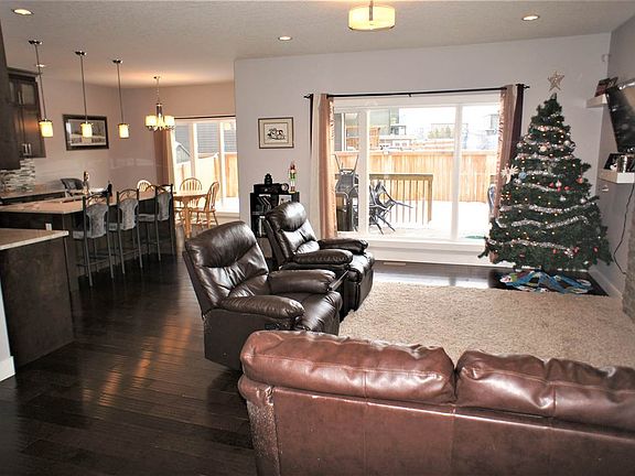 The Cottonwood 1942 square foot two story. Main floor features great room with gas fireplace and stone floor to ceiling surround with entertainment center. Large eat in kitchen with full sized family functional island and walk through corner pantry. Main floor two piece bath. Main floor Laundry. Bright open foyer leads to upper level bonus room and three large bedrooms. Master bedroom has large walk in closet and five piece ensuite. All kitchen and baths have granite counter tops and there is a very generous amount of ceramic tile and hard wood flooring. Rear deck is included. Oversized 26' deep double garage. Appliances negotiable. Air conditioned. Fenced and landscapred