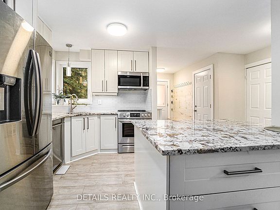 This fully renovated 3 beds + IN-LAW Suite detached home has undergone extensive updates from 2022-2024, including roof, windows, furnace, AC, kitchen, bathrooms, flooring, lighting, closets/wardrobes, 2nd-floor laundry, basement kitchenette, fresh paint, attic insulation, driveway, backyard patio & shed. Basement in-law suite or potential apartment can generate income, garage has been converted into a GYM / Family Room, could easily be returned into a garage. The open-concept main floor features a new kitchen w/large island & granite counters & good size living/dining. The 2nd floor features 3 good size rooms, w/bathrm and laundry. Step outside to a private backyard w/mature greenery & gazebo, providing the perfect setting f/relaxation & outdoor gatherings. Located 5 mins walk to Farm Boy & Starbucks and 10 mins walk to Walmart, Cineplex. On a very quiet street close to parks & schools. No conveyance of any offers till Monday Oct 13, 6:00PM.
