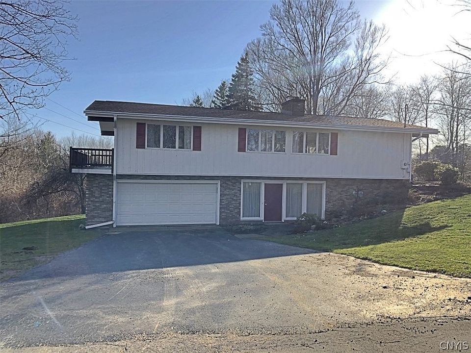 First time on market... This mid-century modern raised ranch has abundant windows to let the outside in. A flagstone entrance leads you to a roomy finished basement, complete with gas fireplace and newer sliders that lead out to the patio. You'll enjoy plenty of wildlife, including deer, right in your backyard. Upstairs, the vaulted living room with even more sliders has an open airy feeling. The master bedroom and second bedroom share a balcony with views of the additional land, all the way to Pulaski Elementary. Enjoy a country setting of 2+ private wooded acres, with the convenience of village water and sewer. I-81, Lake Ontario, Sandy Pond, and the Salmon River are only minutes away. Well maintained home ready for your personal touch.