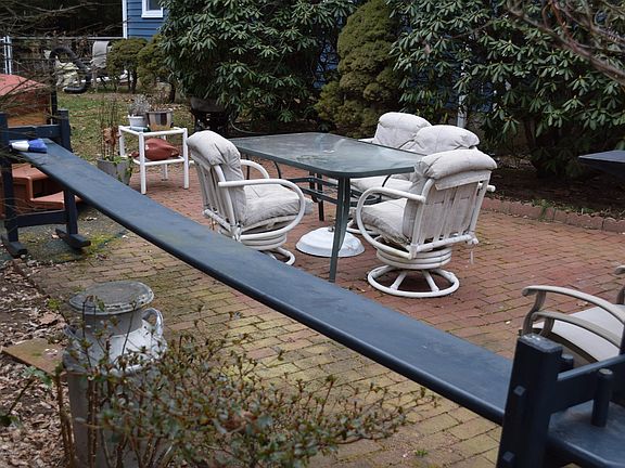 Pull up to newly sided appealing colonial on a circular driveway with Belgium Block curbing. The foyer has ceramic tile and a chair rail w/ Dutch Doors handy for small children and/or household pets. Eat-In Kitchen has cherry cabinets, corian counters and sink, ceramic tile floor, new stainless steel refrigerator. Also has wall oven, microwave, stovetop and D/W. LR has chair rail, large windows, and wood floors. DR features the same. FR has fireplace and new pergo floor. All bdrms have hdwd floors. Master bdrm features a gas fireplace. All 2.5 baths have been upgraded. NEW HWH, AC 2 years old, 7 year old furnace, and back up gas booster with pilot. There is a generator for power outages. Enjoy good times in the hot tub on a separately fenced patio. Gas line in place for a gas grill.