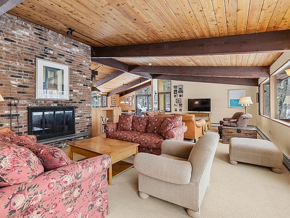 OPEN HOUSE SATURDAY , February 22nd-11:00-3:00.Showings begin 2/20 Exceptional Stratton Mountain Resort location on Windtree Road in the desirable North Brookwood neighborhood with Shuttle from your driveway to the Base Lodge! Enjoy this wonderful deck house open floor plan with great winter views, vaulted ceilings, 2 wood burning fireplaces and multiple decks. Well designed for apres ski gatherings  and spending time together after hitting the trails during great winter weekends. Attractive gourmet kitchen with upscale appliances, stone countertops and signature overhead fan, opens to dining and living.This contemporary design boasts 2 en suite primary bedrooms on the main floor with 2 additional bedrooms + office with 1.5 baths. A lower family room with 2nd fireplace is great for a second hang out space for kids, watching football games or movies. A convenient ski room has a separate entrance to the outdoors. Laundry, Buderus Furnace, New Roof, Newly Painted  Exterior. This is a well maintained resort residence on resort sewer, prime for the next generation of Stratton Mountain Enthusiasts! Stratton Sports Center/Fitness Center Bond. Don't miss this one. It's time to make Stratton Resort your winter getaway!