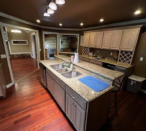 - Cathedral Ceiling(s), Vaulted Ceiling(s), Walk-In Closet(s), Bar, Kitchen Island, Custom Cabinetry, Granite Counters, Workshop/Hobby Area, Entrance Foyer, Separate Dining