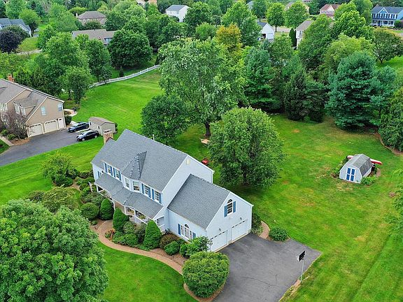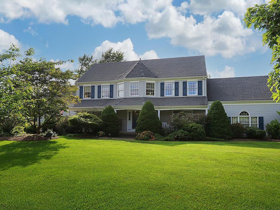 Welcome to this elegant 5 bedroom, 2.5 bath colonial in sought after Woodside Farms. This home is situated on a quiet cul de sac street surrounded by mature landscaping. Enjoy beautiful views of the private yard from rear cedar screened porch. Front porch entry leads toceramic tiled foyer. Kitchen open to family room and dining room offers a breakfast area, sliders, stainless appliances (included), peninsula and desk. Grand family room features cathedral ceiling, skylight, slider, wood beams & brick wood burning fireplace. Dining Room with newly refinished hardwood floors, moldings, french doors is great for holiday gatherings. Spacious private living room perfect for relaxing, with french doors to foyer and overlooking the gorgeous front grounds and large front porch. The first floor bedroom, powder room and laundry complete the main level. Second level includes a spacious master bedroom with walk in closet and ensuite bath with jacuzzi tub and separate shower stall, along with 4 other bedrooms. Bonus room with closet through 4th bedroom, makes for a 6th bedroom. Finished basement recreation room and storage / utility room. This community features PUBLIC WATER & SEWER, natural gas and private 40+ acre recreation area for residents only, which includes Tennis/pickle ball Courts, basketball courts, picnic area, baseball, lacrosse/soccer fields and walking trail. Located in the highly rated Flemington - Raritan School District, Barley Sheaf Elementary voted best elementary school in Hunterdon County. Tucked away in a quaint neighborhood, however convenient to shopping dining, parks and downtown Flemington. Dual HVAC units replaced 2012. Roof replaced in 2007 offers a 30 year warranty. Basement finished in 2012 with all permits, newer LVT installed later. Most of the interior and exterior of home freshly painted in July 2021. * Curtains in family room, Freezer and refrigerator in basement are excluded.
