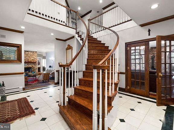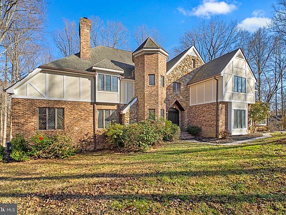 Welcome to this luxurious Tudor-style residence, a 7-bedroom masterpiece complemented by a circular driveway, a flowing stream in the back, and nuzzled on over 3.5 acres which backs up to the Baltimore Country Club golf course. As you enter through the double doors, you are greeted by an impressive foyer accented by a custom leaded glass window insert, featuring a curved staircase leading to the upper level setting the stage for the grandeur within. The living room is a focal point, adorned with a floor-to-ceiling stone fireplace that exudes warmth and character. A large library/office awaits reading enthusiasts, offering a quiet escape for work or relaxation. The heart of the home lies in the spacious eat-in kitchen, featuring warm wood cabinetry, a center island with a gas stove and built-in wine rack, beautiful countertops, and double French doors leading to a sunroom. The sunroom, with cathedral ceilings, skylights, and panoramic views of the back yard, creates a serene space for year-round enjoyment. Mosey to the kitchen for breakfast down the back staircase. These stairs lead to the kitchen and family room area, where the family room boasts a wood stove for cozy gatherings. A large separate dining room provides an elegant setting for formal occasions. A half bath on the main level adds to the convenience of this exceptional home. The first floor guest suite is a private retreat with an ensuite bathroom, offering convenience and luxury. On the second level, discover five additional bedrooms, each with its bathroom, and a 24x24 finished "bonus room" or 7th bedroom, ensuring comfort and privacy for all. The master bedroom features his and her sinks, his and her walk in closets and a jacuzzi bathtub. The finished lower level is an entertainer' s dream, featuring an additional wood stove, a bar/kitchen area, and a ½ bath. Two storage rooms and a laundry room ensure plenty of space to keep things organized. Throughout the home, many beautiful and unique windows, including custom leaded glass window inserts, allow natural light to pour in, creating an atmosphere of timeless beauty. Seamlessly blend classic elegance with modern comfort in this Tudor-style haven. Schedule your visit today and immerse yourself in the elegance, comfort, and unique features that make this home truly extraordinary. Welcome home!