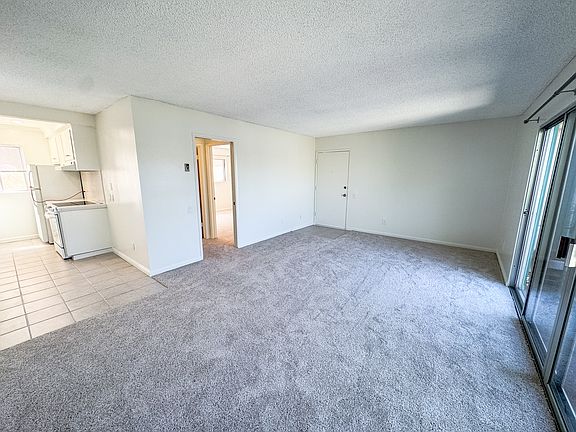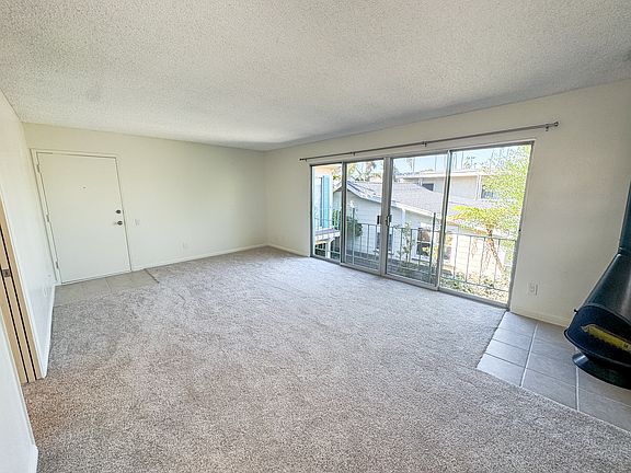 Spacious upper-level one-bedroom unit with fresh paint, new carpet, and a private garage what more could you want? Enter a large living area featuring a double door patio slider, a cozy fireplace, and ample space for furniture. The dining area, with its own lighting, is adjacent to the kitchen, which offers plenty of cabinetry, a new stove, and a spacious refrigerator. The hallway boasts floor-to-ceiling cabinets for extra storage and includes a pocket door for privacy. The bedroom features a large window and a closet that spans the entire length of the room. The separate bathroom includes a large vanity, additional storage cabinets, and a shower/tub combo. Includes a detached one car garage and onsite laundry. Owner pays water, trash, sewer. Tenant pays electric, gas, and internet. No pets, no smoking. 12 month lease. One car garage.