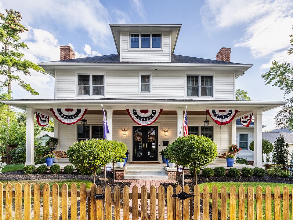 Just a block behind all the fun of Carmel's Main St and adjacent to the Monon, this extraordinary home is perfectly positioned for all the city has to offer! Its charming picket fenced, beautifully appointed lawn, and welcoming front porch only add to the home's impeccable appearance. Reconstructed in 2018, the home offers incredible features throughout warm wide plank hardwoods, large windows shaded by plantation shutters, and sophisticated lighting. Chef's grade kitchen features a large center island, top of the line appliances, and ample space to prep meals for both small and large groups. Main floor primary suite is bright and beautiful. Upper level shines with 3 bedrooms, office, and large bonus room on 3rd floor. Private rear yard!