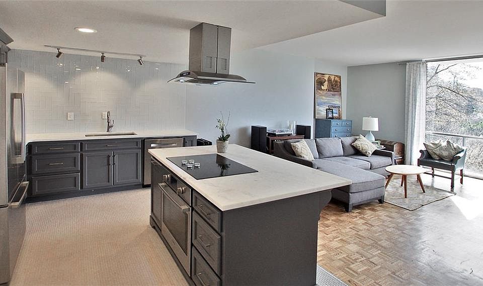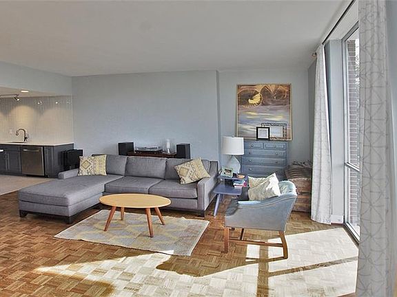 DYNAMIC END UNIT WITH SKYLINE VIEW! OPEN FLOOR PLAN. ORIGINAL REFINISHED PARQUET FLOORS. COMPLETELY RENOVATED KITCHEN INCLUDES BRAZILIAN MARBLE COUNTERS, CUSTOM WOOD CABINETS, STAINLESS BOSCH APPLIANCES, GLASS TILE BACKSPLASH & FEATURE WALL. RENOVATED BATH INCLUDES BRAZILIAN MARBLE COUNTERS, 2 CUSTOM WOOD VANITIES, CARRERA MARBLE SHOWER W/ GLASS ENCLOSURE - POCKET DOOR PROVIDES OPTION FOR 1/2 BATH FOR GUESTS. CUSTOM BARN DOOR & WALK IN CLOSET IN MASTER. BOTH BEDRMS HAVE FRENCH DOORS TO SUNROOM. IN UNIT BOSCH WASHER & DRYER IN CLOSET. POOL & TENNIS. SECURE PARKING.