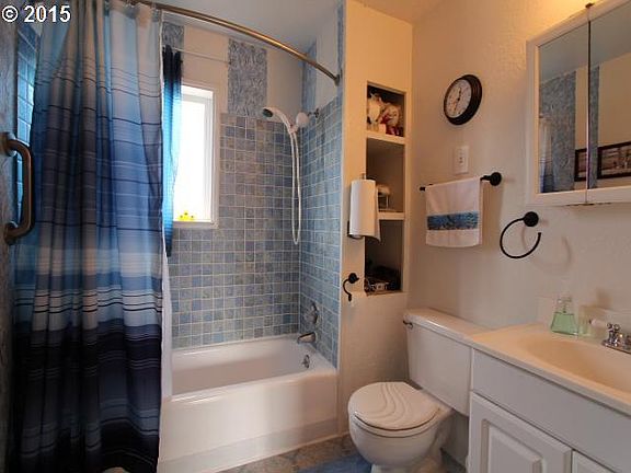 Sweet and adorable beach bungalow in West Bandon near schools, grocery & hardware store. 2BD 1BA eat-in kitchen/dining, plenty of pantry space & cupboards. Nicely landscaped with lawn, flowers, large fenced yard & gardeners shed. One of the bedrooms overlooks the backyard & opens to a massive deck. Pull-thru garage for parking the boat in the back! Freshly painted and new carpet.