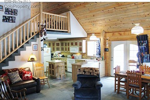 Custom Log home close to Red Feathers Lakes with Loft, huge detached garage and shop on wooded 1.25 acre lot on the Lone Pine Creek. Great room with wood burning stove, French doors, and vaulted ceiling. Bath has footed tub, with separate shower. Bright kitchen features island, pantry, built-in microwave, dishwasher, special decorator cabinets, and corner sink. Large covered deck with swing overlooks the many trees, mountains and Lone Pine Creek.
