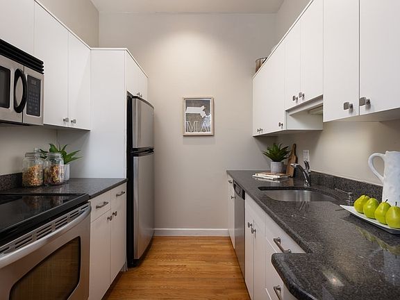 Elegant and oversized 1 bedroom at prestigious Dartmouth Square! This corner exposed parlor level 1 bedroom offers tall ceilings, large windows and charming front facing views of Appleton St and Dartmouth St. Easy access to this parlor level home in this former Schoolhouse building, this grand home offers an excellent layout with a well proportioned galley kitchen with ample storage, excellent counter/work space and access to the dining area. A large living area has a corner exposure with charming views of the South End, and a centered fireplace. King size bedroom has great storage and a corner exposure. Large bath with double vanity and a window. Hardwood floors throughout, central air, in unit washer/dryer. This well maintained building is in an A+ South End location, with an elevator, professional management & superbly landscaped common grounds. Convenient access to Copley Sq, I-90 and Back Bay station!
