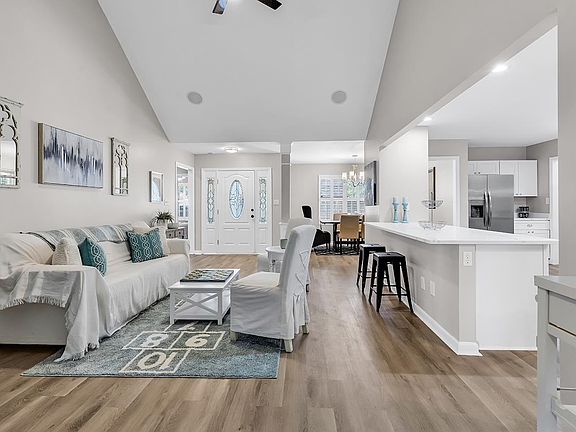 Renovated dream home in quiet neighborhood, all on single level with open concept and plenty of living space. This spacious property features 4 bedrooms, 2 bathrooms, living and family room with fireplace and vaulted ceilings, plantation shutters throughout, built in speakers and sound system in every room and garage, and a bonus Carolina room - perfect for entertaining or creating cozy family memories. Step inside to find brand new luxury vinyl plank (LVP) flooring throughout, custom open concept with large kitchen peninsula and breakfast nook, updated light fixtures, formal dining area, beautifully remodeled bathrooms with modern vanities and all new kitchen. The kitchen is a chef’s dream, showcasing new stainless steel appliances, high end granite countertops, pantry and featured wine/beverage refrigerator. Outside, the home has a brand new roof with transferable 25 year warranty for peace of mind, has been freshly landscaped and the two car garage features a screen system that allows for maximizing its use. Relax in your Carolina room or unwind on the large back patio overlooking a fully fenced backyard—ideal for pets, play, or backyard barbecues. Don’t miss the chance to own this turn-key gem in a desirable location close to shopping, dining, and the beach. Schedule your showing today! Furniture is available for purchase with the home.