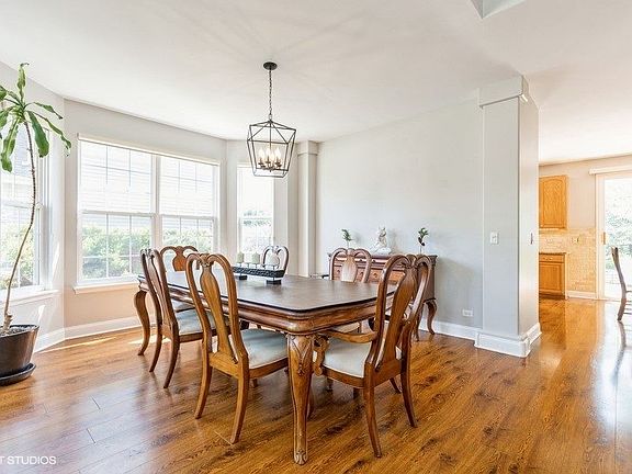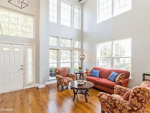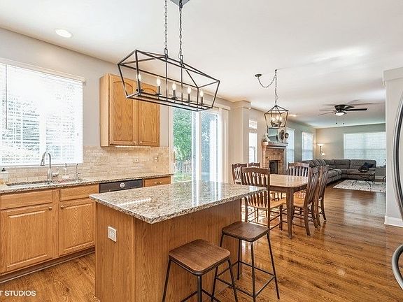Welcome to this beautifully updated 5 bedroom, 3.1 bathroom home in the sought-after Cambria neighborhood. Nearly every inch of this home has been meticulously upgraded, offering a perfect blend of modern elegance and comfortable living. Gorgeous paver walkway and patio leads into the grand 2-story foyer and living room open to the dining room with bay window. Newer wood laminate flooring flows throughout the first floor into the kitchen updated with granite countertops and new light fixtures and open to the extended family room with fireplace and den (or 6th bedroom) ideal for entertaining. A large mudroom/laundry room and powder room finish up the 1st floor. Downstairs, find a finished basement with a huge recreation room featuring a fireplace, a beautiful wood bar with mini-fridge & gaming room, a 5th bedroom and full bathroom. Upstairs, find new carpeting throughout four large bedrooms. The updated hall bathroom with dual vanity and glass enclosure will surely impress. The primary suite includes a walk-in closet and an en-suite bathroom with a separate shower & soaking tub. 2 furnaces, A/C & humidifiers allowing for dual zoning too! Enjoy the peaceful backyard oasis with paver patio and mature trees for privacy & entertainment. Cambria neighborhood with playgrounds, fishing pond and path that leads to community gardens, dog park & so much more! So many things new/newer in this home - please see the updates list including newer roof & siding, appliances & more!