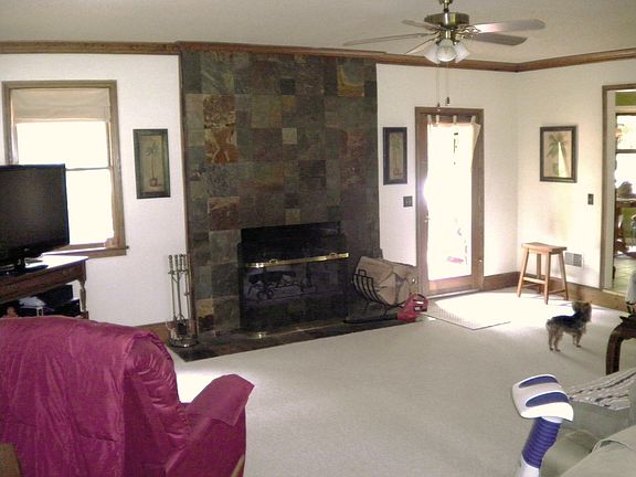 Tile floor in foyer. Great room is step down with tiled fireplace and newly installed Bruce hardwood flooring. Formal dining room has chair rail and laminate floor. Kitchen has tile floor, stainless steel range and dishwasher, chair rail and bay window. Large pantry in laundry room. (Half bath was there. The plumbing is still there if want to put back.) Hall bath has tile floor. Nice size Master bedroom with walk-in closet. Inground gunite pool. Large Deck. Covered arbor. Workshop in garage. Storage under house on cement pad. New plaster in pool 2008. Pump 2 years old. 385' deep well on property.