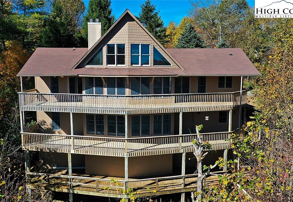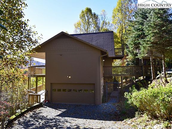 Spacious custom mountain home on over 3 acres with multiple decks and views from every level. The main level features the primary bedroom with an en suite bathroom, 2 additional bedrooms, a bathroom, an open kitchen, laundry, a great room with vaulted wood ceilings, and a wall of windows to enjoy the mountain views through. Upstairs is a loft with a private deck, storage areas, and mountain views. The loft is perfect for a home office or additional sleeping area. The lower level (accessed through the garage or from the exterior) includes an additional kitchen, 2 bedrooms, a bathroom, a den, laundry, and a deck. This home has plenty of parking and a spacious 2-car garage. Stay warm with one of the 2 stone gas fireplaces. Enjoy the mountain views from all the windows that let in a ton of natural light. Located minutes from downtown Boone and only 6 miles from Blowing Rock, this is the perfect mountain getaway or short-term rental. Plenty of storage in the walk-in encapsulated basement.