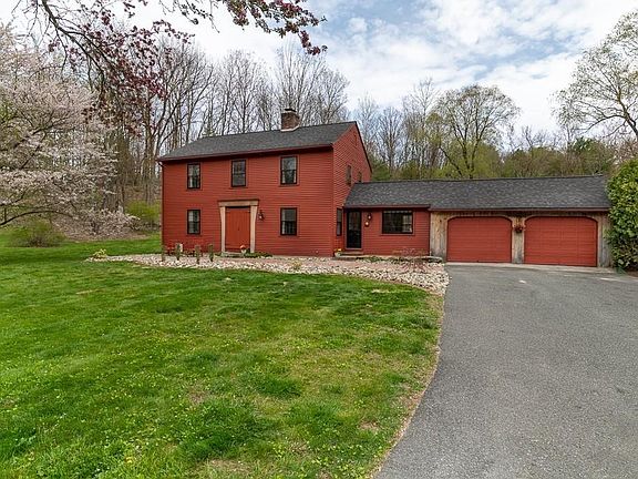 Four seasons of natural beauty surround this classic yet uniquely spirited Center Hall Colonial.Your own park like grounds with a cleared trail leading to a delightful brook following a small stream with its own bridge and a sledding hill. A 25ft by 25 ft barn for storage or renovations has an extended driveway for your vehicles,and cherished 10/12' bowed roof out building. This lovely home has neutral decor and newer appliances (including a large sub zero refrigerator) newer granite counters and designer back splash.tile. This creatively designed space is flexible as the dining room was once used as a Family room and the fireplace setting once featured a dining area. The stunning renovated upstairs bath highlights coordinated marble surfaces of reflective soothing light hues.4 nicely sized bedrooms have newer storage shelves.Other new items are patios and fire pit, the 2nd zone of heat,newer well tank and pump, high end boiler, bulkhead and basement stairs,treasury vault included.