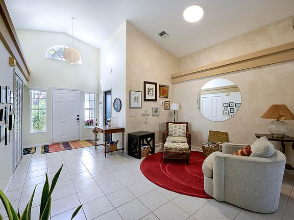 Single story home on a premium lot in Bent Tree, a gated community. This Seaside model features 3 bedrooms, 2 baths and a 2 car garage with extended driveway on a deep lot with an oversized screened patio overlooking a private, well landscaped yard with East exposure. Open, inviting split floor plan with an eat in kitchen in addition to a dining area that leads to the private outdoor living space. Volume ceilings in the primary suite with plenty of closet space, and an updated bathroom featuring a soaking tub and separate shower. Electric and roll down shutters provide easy, complete Hurricane protection. Prime location within the community just a short walk to the community pool and tennis courts. Close to great dining, shopping and easy access to I-95 and the Turnpike.