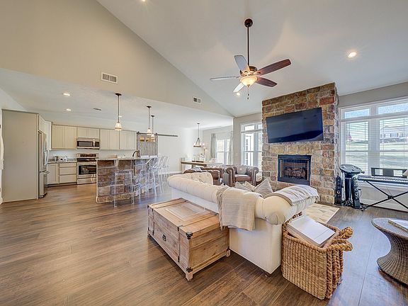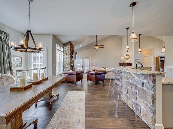 - Interior Features: Gas Log Fireplace, Masonry Fireplace, Ceiling Fan, Cathedral Ceiling, Breakfast Area