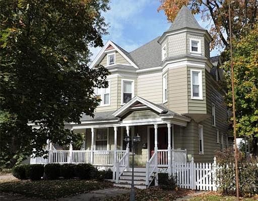 Charm and character are evident throughout this meticulously maintained and updated Victorian home. As you enter the house a large foyer welcomes you boasting original woodwork, hardwood floors and a beautiful solid wood staircase. The first floor features a formal living room, dining room with original fireplace w/Italian tile surround, remodeled kitchen w/center island, family room/den and a full bath w/laundry. On the second floor you will find a charming office situated in the turret, 2 bedrooms w/double closets, and a master suite with the dressing room and California Closet that you have always dreamed of!! On the third floor there is even more potential and possibilities with a small kitchenette, 2 more bedrooms & 3 cedar closets. Newer Buderus furnace & replacement windows. The exterior of this home also has so much to enjoy....an inviting front porch, large patio area, detached two car garage and even a putting green! Expect to be impressed with this home. It's a great VALUE