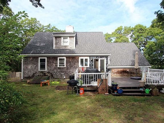 Close to historic 6A and Route 6, Route 149 and Sandy Neck Beach. Perched atop a 1+ acre lot in a coveted West Barnstable neighborhood. Enjoy the sunny living room with gleaming hardwood floors and bay window and the nice sized eat in kitchen with glass sliders to the expansive rear deck that is constructed of IPE Brazilian mahogany. Perfect deck for those summer cookouts which overlooks the private and wooded rear yard. Great first floor living area with 2 bedrooms and a full bath and expansion possibilities. Upstairs 2 rooms and bath framed and insulated. One room measures 18x15.5 and the other 14x18. The bathroom measuring 8x7.5. Also additional unfinished room over the garage measuring 16.5 x 16. Bank financing available for expansion.