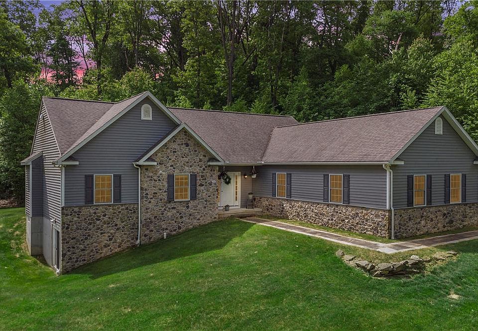 *Multiple Offers Received" Best and Final due 8 PM May 30. Experience serene private living in this custom-built 2014, 3 bedroom, 2.5 half bath home situated on 17.5 acres in District Twp, Berks County. Features include maple & hickory hardwood floors, a stone-faced wood-burning fireplace, cathedral ceilings, and a modern kitchen with updated appliances, granite countertops, and plenty of cabinet space. The 3 bedrooms offer a mix of carpet and hickory hardwood floors, bay windows, and walk-in closets sure to delight. The large master bedroom has an en-suite bath with a soaking tub and shower. The full insulated basement is ready for your touch with a walk-out entrance that leads to the beautiful manicured lot and fire pit area. No expense was spared with regard to mechanical features as the property has a Geothermal HVAC system, double-water heater, well maintained septic, and well systems to ensure efficiency. Assessed as an Act 319 area