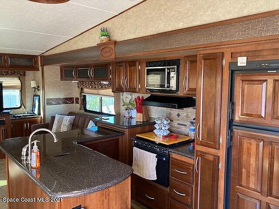Welcome home to Forest Lakes of Cocoa. A gated 55+ community just minutes from shopping, beaches, VA clinic, cruise ships. Heated pool, shuffleboard leagues, crafts, just to name a few of the activities that you will enjoy. Golf cart and pet friendly community. Perfect snowbird retreat or affordable year round living. RV pad with 5th wheel. You own your own land & pad. Beautiful 35 Ft Crusader by Forest River with three slides. New AC, awning, hot water tank. Storage shed with washer, dryer, utility sink.