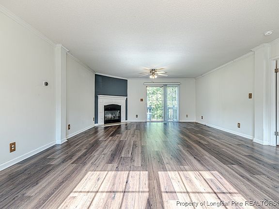 This charming manufactured home offers an easy commute to Ft. Liberty or Sanford, featuring new laminate flooring throughout. The spacious family room boasts a corner fireplace, perfect for cool evenings. The kitchen includes a lovely bar, ample cabinetry, and a walk-in pantry. The expansive primary bedroom suite comes with a soaking tub and a separate shower. A private backyard with a wooded backdrop completes this delightful home.